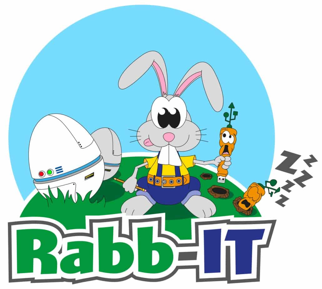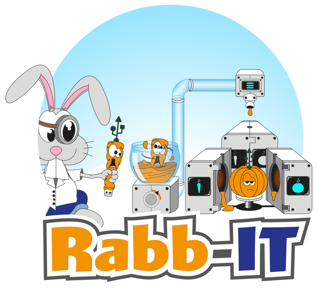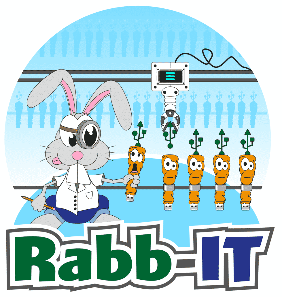 Les news IT sur l’intranet n’étaient pas suffisamment consultées. Il m’a été demandé dessiner une mascotte qui se nommerait Rabb-IT. De cela est né également son compagnon, la carotte-USB :-)